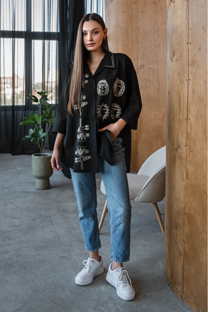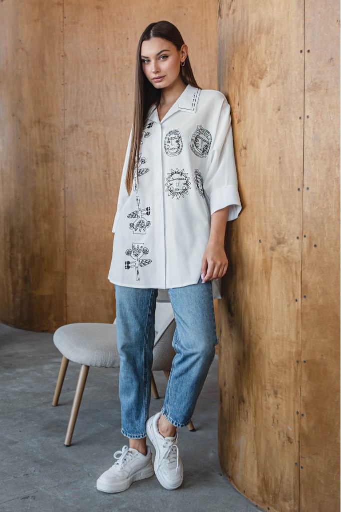 Стильна вишита сорочка оверсайз з етнічними мотивами вишивки ідеально підходить для створення стильних міських образів. Поєднайте її з джинсами, шортами чи спідницею - і виглядайте неперевершено щодня.